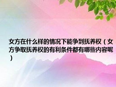 目前大家应该是对女方争取抚养权的有利条件都有哪些内容呢比较感兴趣的,所以今天CC就来为大家整理了一些关于女方争取抚养权的有利条件都有哪些内容呢方面的相关知识来分享给大家,希望大家会喜欢哦。