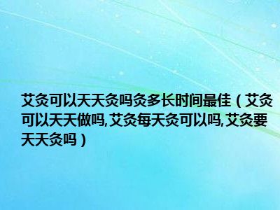 目前大家应该是对艾灸可以天天做吗,艾灸每天灸可以吗,艾灸要天天灸吗比较感兴趣的,所以今天小编CC就来为大家整理了一些关于艾灸可以天天做吗,艾灸每天灸可以吗,艾灸要天天灸吗方面的相关知识来分享给大家,希望大家会喜欢哦。