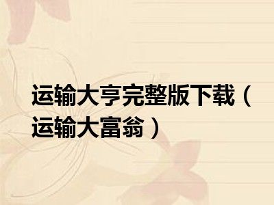 导读目前是有很多朋友们对于运输大富翁这个信息比较感兴趣,那么小编也是收集了一些运输大富翁相关的信息来分享给大家,希望你会喜欢哦。1、...