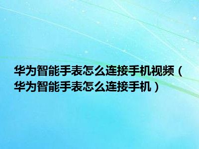 1、 华为智能手表怎么连接手机?