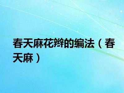 导读目前是有很多朋友们对于春天麻这个信息比较感兴趣,那么小编也是收集了一些春天麻相关的信息来分享给大家,希望你会喜欢哦。1、春天麻(...