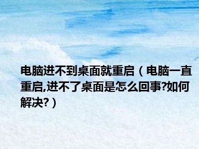 相信目前很多小伙伴对于电脑一直重启,进不了桌面是怎么回事?如何解决?都比较感兴趣,那么小编今天在网上也是收集了一些与电脑一直重启,进不了桌面是怎么回事?如何解决?相关的信息来分享给大家,希望能够帮助到大家哦。