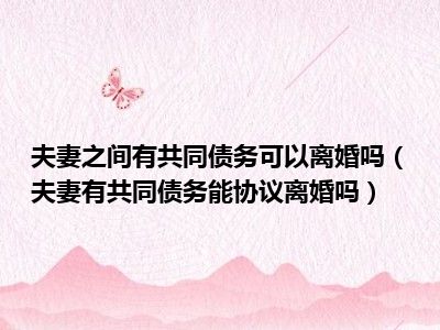 目前大家应该是对夫妻有共同债务能协议离婚吗比较感兴趣的,所以今天CC就来为大家整理了一些关于夫妻有共同债务能协议离婚吗方面的相关知识来分享给大家,希望大家会喜欢哦。