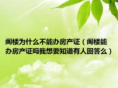 导读 目前大家应该是对阁楼能办房产证吗我想要知道有人回答么比较感兴趣的,所以今天好房网小编CC就来为大家整理了一些关于阁楼能办房产证吗我想