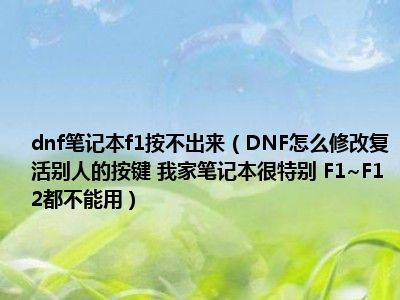 相信目前很多小伙伴对于DNF怎么修改复活别人的按键 我家笔记本很特别 F1~F12都不能用都比较感兴趣,那么小编今天在网上也是收集了一些与DNF怎么修改复活别人的按键 我家笔记本很特别 F1~F12都不能用相关的信息来分享给大家,希望能够帮助到大家哦。