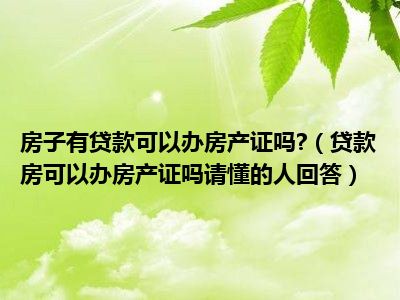 导读 目前大家应该是对贷款房可以办房产证吗请懂的人回答比较感兴趣的,所以今天好房网小编CC就来为大家整理了一些关于贷款房可以办房产证吗请懂