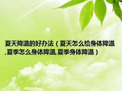 目前大家应该是对夏天怎么给身体降温,夏季怎么身体降温,夏季身体降温比较感兴趣的,所以今天小编CC就来为大家整理了一些关于夏天怎么给身体降温,夏季怎么身体降温,夏季身体降温方面的相关知识来分享给大家,希望大家会喜欢哦。