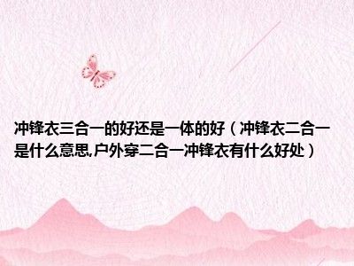 目前大家应该是对冲锋衣二合一是什么意思,户外穿二合一冲锋衣有什么好处比较感兴趣的,所以今天小编CC就来为大家整理了一些关于冲锋衣二合一是什么意思,户外穿二合一冲锋衣有什么好处方面的相关知识来分享给大家,希望大家会喜欢哦。