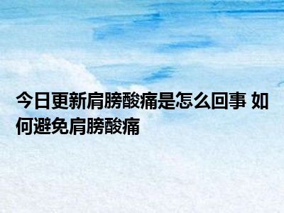 目前上述的内容应该能够为大家解答出大家对于肩膀酸痛是怎么回事 如何避免肩膀酸痛的疑惑了,所以如果大家还想要了解更多的知识内容,也可以关注本站其他文章进行了解哦。