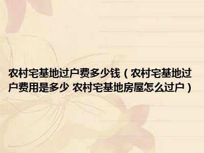 导读 目前大家应该是对农村宅基地过户费用是多少 农村宅基地房屋怎么过户比较感兴趣的,所以今天好房网小编CC就来为大家整理了一些关于农村宅基
