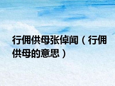 目前应该是有很多小伙伴对于行佣供母的意思方面的信息比较感兴趣,现在小编就收集了一些与行佣供母的意思相关的信息来分享给大家,感兴趣的小伙伴可以接着往下看,希望会帮助到你哦。