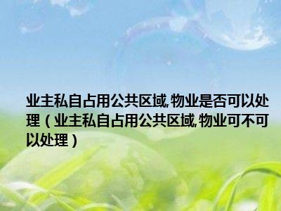 业主私自占用公共区域,物业可以处理。公共区域是属于所有业主的,不能私自占用,如果私自占用了公共区域就是侵犯了相邻业主的权益,是违法行为。物业管理企业可以要求占用公共区域的业主停止占用,私自占用公共区域所造成的损失和损坏需要占用公共区域的业主承担责任。