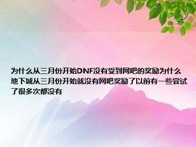 相信目前很多小伙伴对于DNF怎么从3月份就没有网吧奖励啊?地下城怎么从3月份就没有网吧奖励啊?,以前还是有的,试了很多都没有?都比较感兴趣,那么小编今天在网上也是收集了一些与DNF怎么从3月份就没有网吧奖励啊?地下城怎么从3月份就没有网吧奖励啊?,以前还是有的,试了很多都没有?相关的信息来分享给大家,希望能够帮助到大家哦。