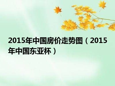 1、2015年中国东亚杯是东亚杯历史上第6届赛事,比赛于2015年8月1日至9日在中国武汉进行。