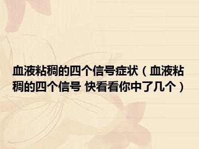 目前大家应该是对血液粘稠的四个信号 快看看你中了几个比较感兴趣的,所以今天小编CC就来为大家整理了一些关于血液粘稠的四个信号 快看看你中了几个方面的相关知识来分享给大家,希望大家会喜欢哦。