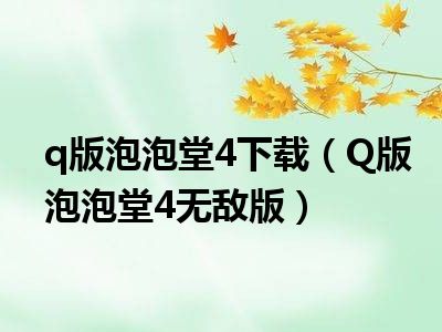 导读 目前是有很多朋友们对于Q版泡泡堂4无敌版这个信息比较感兴趣,那么小编也是收集了一些Q版泡泡堂4无敌版相关的信息来分享给大家,希望你会喜