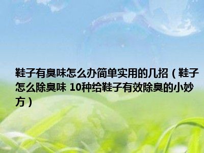 目前大家应该是对鞋子怎么除臭味 10种给鞋子有效除臭的小妙方比较感兴趣的,所以今天小编CC就来为大家整理了一些关于鞋子怎么除臭味 10种给鞋子有效除臭的小妙方方面的相关知识来分享给大家,希望大家会喜欢哦。