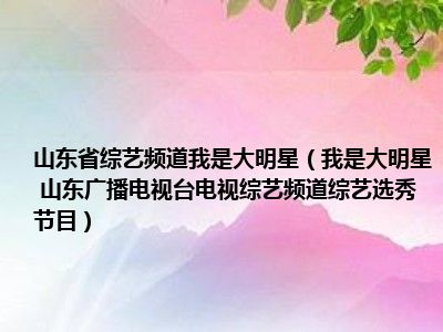 导读 目前是有很多朋友们对于我是大明星 山东广播电视台电视综艺频道综艺选秀节目这个信息比较感兴趣,那么小编也是收集了一些我是大明星 山东...