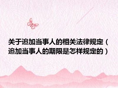 目前大家应该是对追加当事人的期限是怎样规定的比较感兴趣的,所以今天CC就来为大家整理了一些关于追加当事人的期限是怎样规定的方面的相关知识来分享给大家,希望大家会喜欢哦。