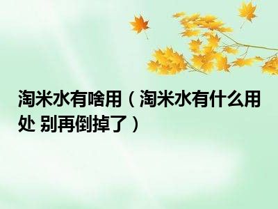 目前大家应该是对淘米水有什么用处 别再倒掉了比较感兴趣的,所以今天小编CC就来为大家整理了一些关于淘米水有什么用处 别再倒掉了方面的相关知识来分享给大家,希望大家会喜欢哦。