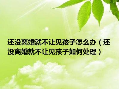 目前大家应该是对还没离婚就不让见孩子如何处理比较感兴趣的,所以今天CC就来为大家整理了一些关于还没离婚就不让见孩子如何处理方面的相关知识来分享给大家,希望大家会喜欢哦。
