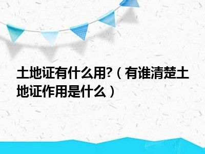 导读 目前大家应该是对有谁清楚土地证作用是什么比较感兴趣的,所以今天好房网小编CC就来为大家整理了一些关于有谁清楚土地证作用是什么方面的相