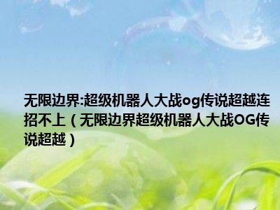 导读目前是有很多朋友们对于无限边界:超级机器人大战OG传说超越这个信息比较感兴趣,那么小编也是收集了一些无限边界:超级机器人大战OG传说超...