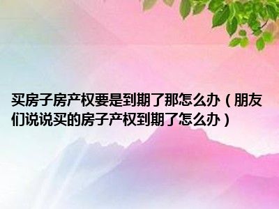 导读 目前大家应该是对朋友们说说买的房子产权到期了怎么办比较感兴趣的,所以今天好房网小编CC就来为大家整理了一些关于朋友们说说买的房子产权