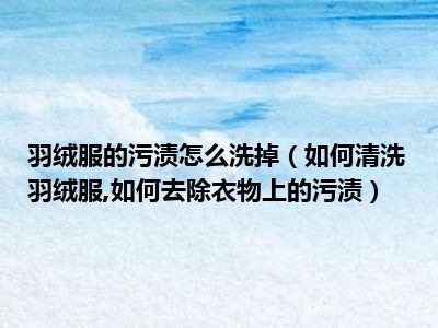 目前大家应该是对如何清洗羽绒服,如何去除衣物上的污渍比较感兴趣的,所以今天小编CC就来为大家整理了一些关于如何清洗羽绒服,如何去除衣物上的污渍方面的相关知识来分享给大家,希望大家会喜欢哦。