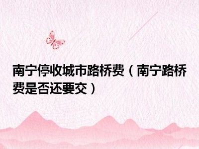 目前应该是有很多小伙伴对于南宁路桥费是否还要交方面的信息比较感兴趣,现在小编就收集了一些与南宁路桥费是否还要交相关的信息来分享给大家,感兴趣的小伙伴可以接着往下看,希望会帮助到你哦。