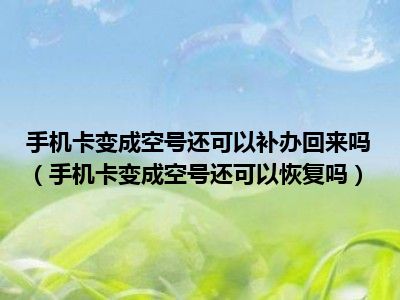 导读 1、手机卡变成空号还可以恢复吗2、超过三个月不付费的手机号,会被运营商收回。在“预售号”状态下,手机卡变成空号可以收回。3、空号出现