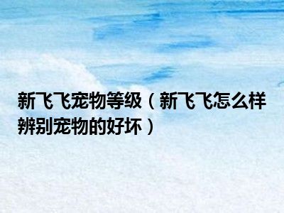 相信目前很多小伙伴对于新飞飞怎么样辨别宠物的好坏都比较感兴趣,那么小编今天在网上也是收集了一些与新飞飞怎么样辨别宠物的好坏相关的信息来分享给大家,希望能够帮助到大家哦。