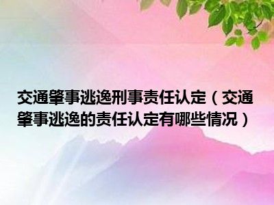 目前大家应该是对交通肇事逃逸的责任认定有哪些情况比较感兴趣的,所以今天CC就来为大家整理了一些关于交通肇事逃逸的责任认定有哪些情况方面的相关知识来分享给大家,希望大家会喜欢哦。