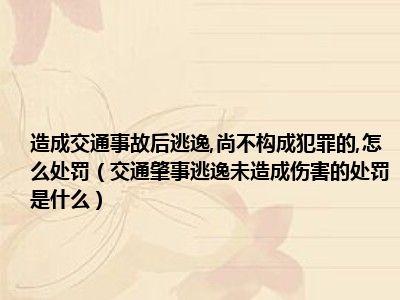目前大家应该是对交通肇事逃逸未造成伤害的处罚是什么比较感兴趣的,所以今天CC就来为大家整理了一些关于交通肇事逃逸未造成伤害的处罚是什么方面的相关知识来分享给大家,希望大家会喜欢哦。