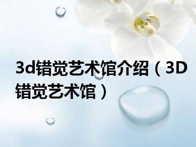 导读目前是有很多朋友们对于3D错觉艺术馆这个信息比较感兴趣,那么小编也是收集了一些3D错觉艺术馆相关的信息来分享给大家,希望你会喜欢哦。...