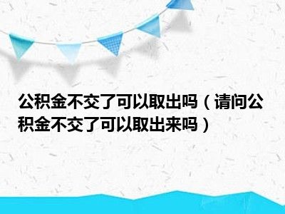 导读 目前大家应该是对请问,公积金不交了可以取出来吗比较感兴趣的,所以今天好房网小编CC就来为大家整理了一些关于请问,公积金不交了可以取出