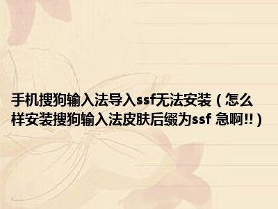 相信目前很多小伙伴对于怎么样安装搜狗输入法皮肤后缀为ssf 急啊!!都比较感兴趣,那么小编今天在网上也是收集了一些与怎么样安装搜狗输入法皮肤后缀为ssf 急啊!!相关的信息来分享给大家,希望能够帮助到大家哦。