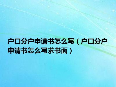 目前应该是有很多小伙伴对于户口分户申请书怎么写求书面方面的信息比较感兴趣,现在小编就收集了一些与户口分户申请书怎么写求书面相关的信息来分享给大家,感兴趣的小伙伴可以接着往下看,希望会帮助到你哦。