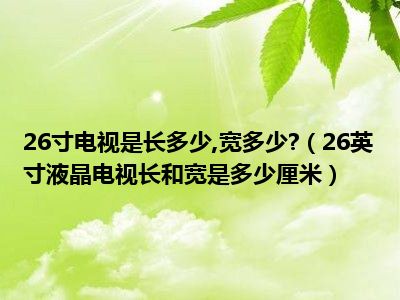 目前应该是有很多小伙伴对于26英寸液晶电视长和宽是多少厘米方面的信息比较感兴趣,现在小编就收集了一些与26英寸液晶电视长和宽是多少厘米相关的信息来分享给大家,感兴趣的小伙伴可以接着往下看,希望会帮助到你哦。