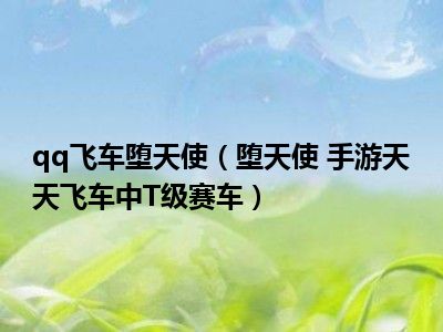 导读 目前是有很多朋友们对于堕天使 手游天天飞车中T级赛车这个信息比较感兴趣,那么小编也是收集了一些堕天使 手游天天飞车中T级赛车相关的信...
