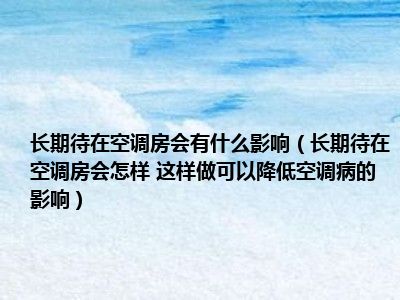 目前大家应该是对长期待在空调房会怎样 这样做可以降低空调病的影响比较感兴趣的,所以今天小编CC就来为大家整理了一些关于长期待在空调房会怎样 这样做可以降低空调病的影响方面的相关知识来分享给大家,希望大家会喜欢哦。
