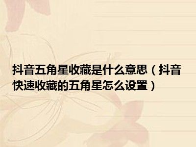 导读 1、抖音快速收藏的五角星怎么设置2、Tik Tok快速收集五角星不需要设置。可以直接在视频页面点击五角星进行首次收藏,在个人主页可以查看