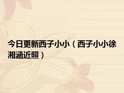 目前上述的内容应该能够为大家解答出大家对于西子小小(西子小小徐湘涵近照)的疑惑了,所以如果大家还想要了解更多的知识内容,也可以关注本站其他文章进行了解哦。