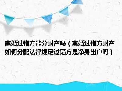 目前大家应该是对离婚过错方财产如何分配法律规定过错方是净身出户吗比较感兴趣的,所以今天CC就来为大家整理了一些关于离婚过错方财产如何分配法律规定过错方是净身出户吗方面的相关知识来分享给大家,希望大家会喜欢哦。