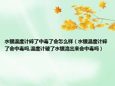 目前大家应该是对水银温度计碎了会中毒吗,温度计破了水银流出来会中毒吗比较感兴趣的,所以今天小编CC就来为大家整理了一些关于水银温度计碎了会中毒吗,温度计破了水银流出来会中毒吗方面的相关知识来分享给大家,希望大家会喜欢哦。