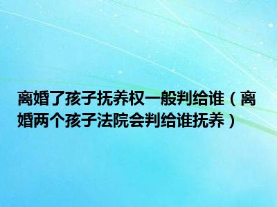 目前大家应该是对离婚两个孩子法院会判给谁抚养比较感兴趣的,所以今天CC就来为大家整理了一些关于离婚两个孩子法院会判给谁抚养方面的相关知识来分享给大家,希望大家会喜欢哦。
