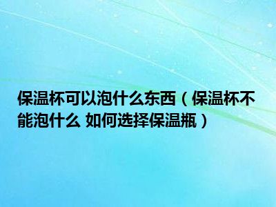 目前大家应该是对保温杯不能泡什么 如何选择保温瓶比较感兴趣的,所以今天小编CC就来为大家整理了一些关于保温杯不能泡什么 如何选择保温瓶方面的相关知识来分享给大家,希望大家会喜欢哦。