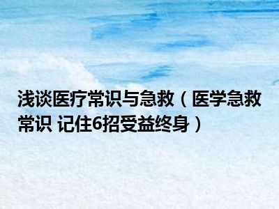 目前大家应该是对医学急救常识 记住6招受益终身比较感兴趣的,所以今天小编CC就来为大家整理了一些关于医学急救常识 记住6招受益终身方面的相关知识来分享给大家,希望大家会喜欢哦。