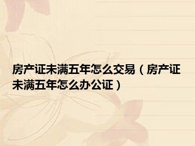 导读 目前大家应该是对房产证未满五年,怎么办公证比较感兴趣的,所以今天好房网小编CC就来为大家整理了一些关于房产证未满五年,怎么办公证方面