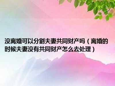 目前大家应该是对离婚的时候夫妻没有共同财产怎么去处理比较感兴趣的,所以今天CC就来为大家整理了一些关于离婚的时候夫妻没有共同财产怎么去处理方面的相关知识来分享给大家,希望大家会喜欢哦。